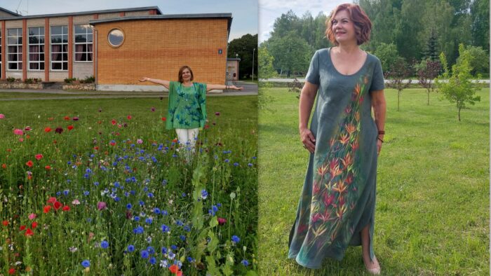 “Mana laime ir tā,ka pirms vairākiem gadiem iepazinos ar mākslinieci Agnesi Vaļinieci un viņas fantastiskajiem darbiem- apgleznotajām zīda šallēm,lakatiem un kleitām. Arī manā kolekcijā ir vairāki Agneses ekskluzīvie darbi. Tā ir laime staigāt Agneses radītā ar pļavas ziediem izrotātā zīda vai lina kleitā,priecāties par košajām krāsām un pat just,ka ziedi kā dzīvi tūlīt sāks smaržot…