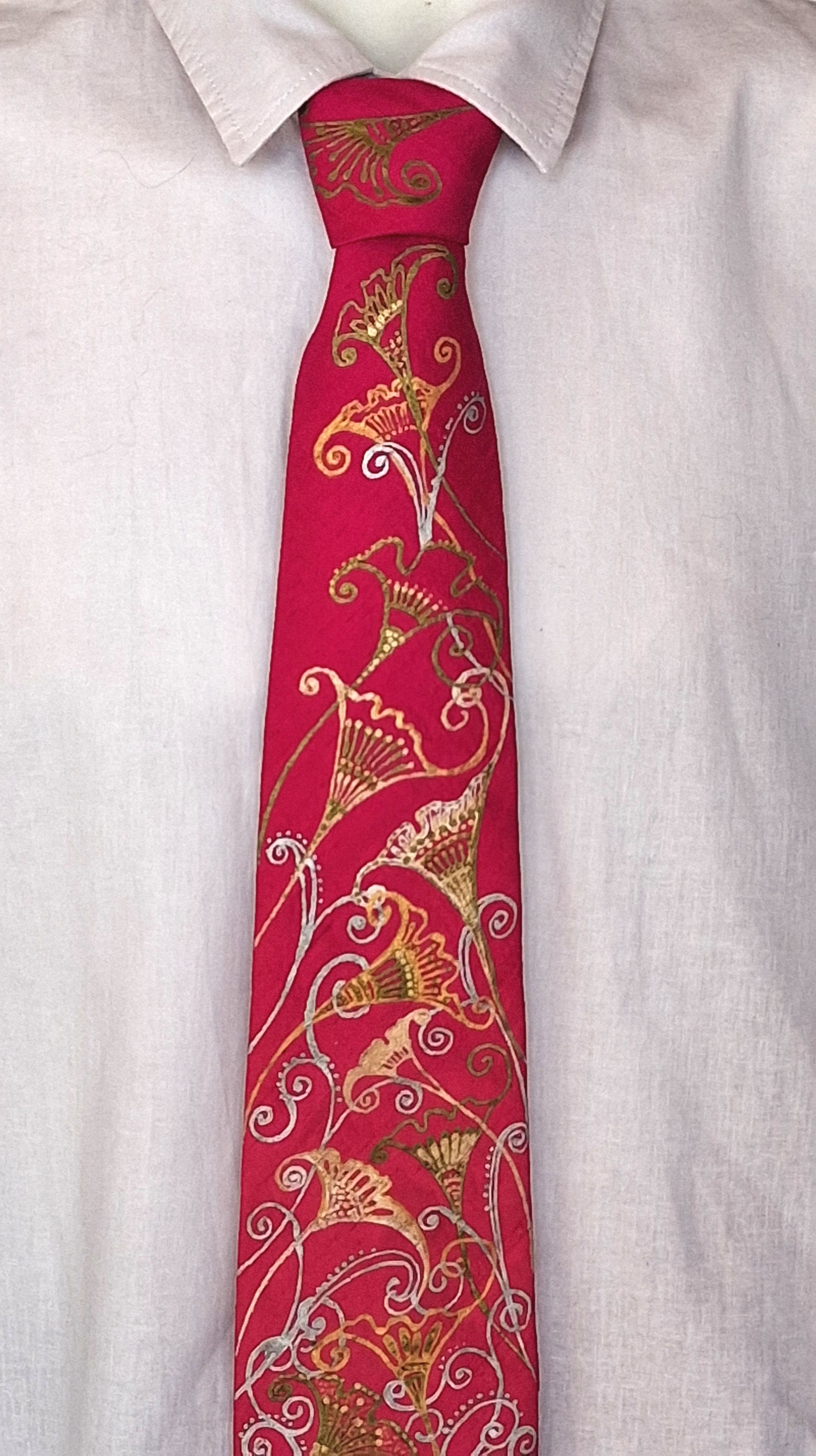 Ar rokām apgleznots zīda kaklasaites un lakata komplekts – izteiksmīgs, elegants un unikāls aksesuārs.